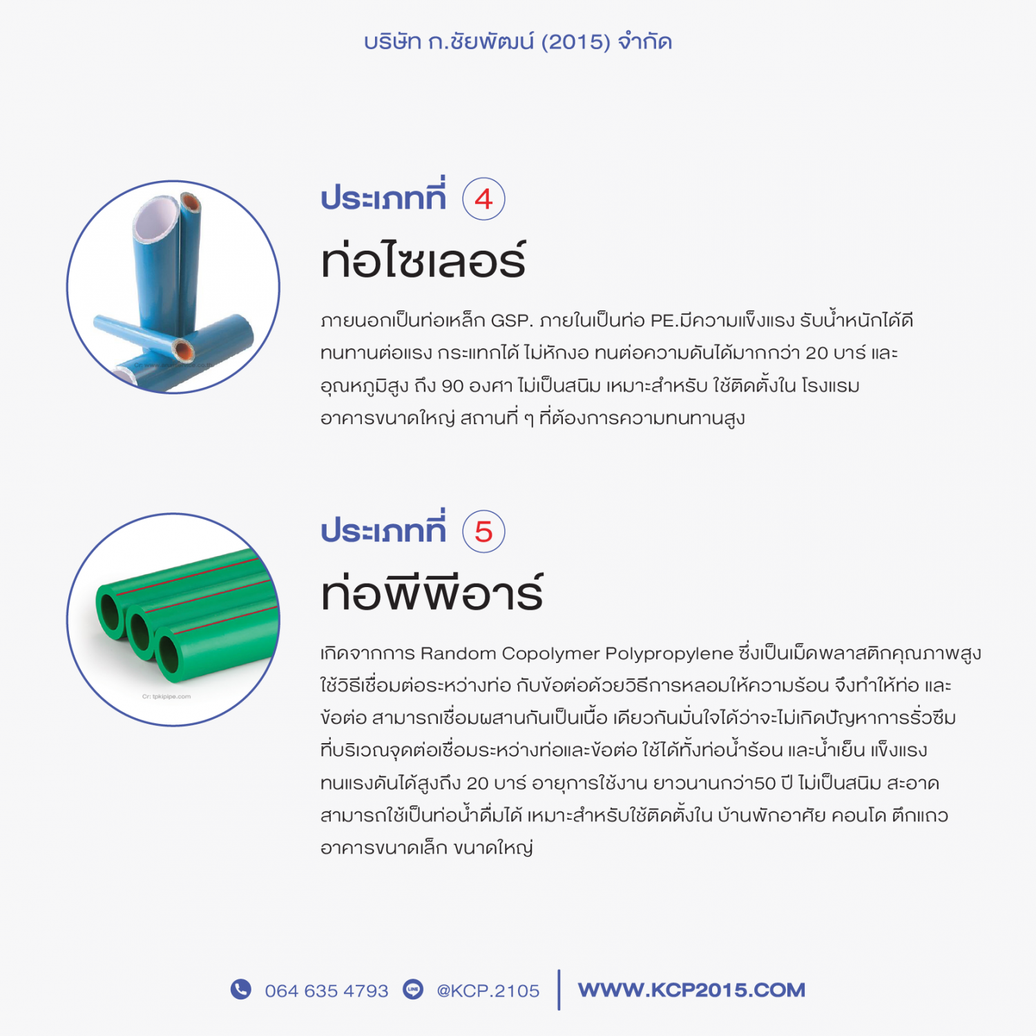 ท่อประปามีหลายแบบ แบ่งได้ 5 ประเภท ดังนี้